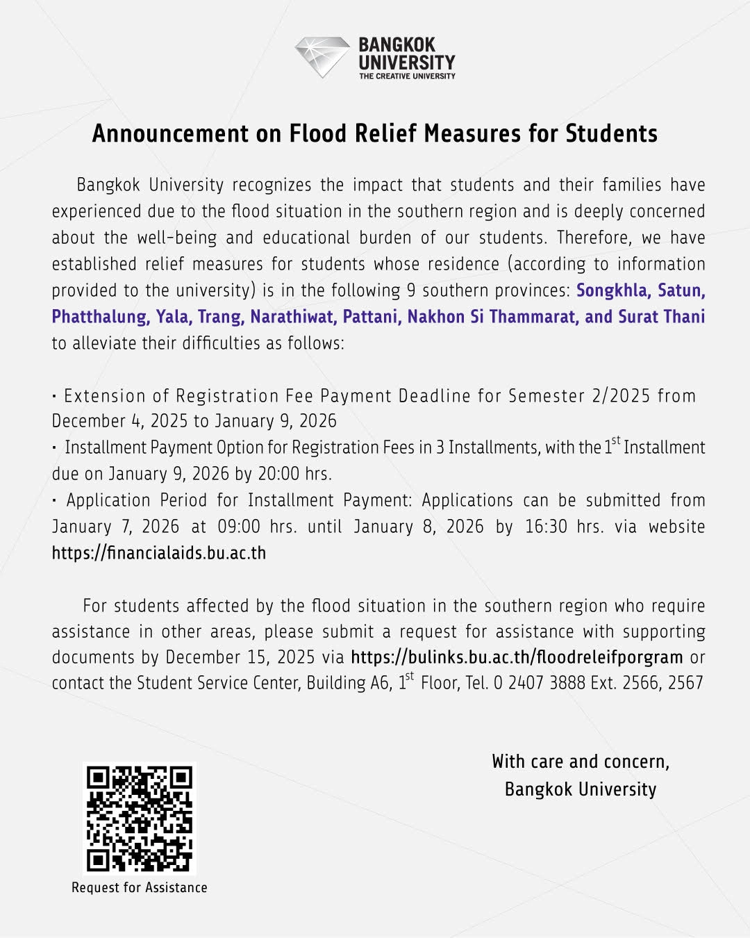 Student Affairs Division Announcement