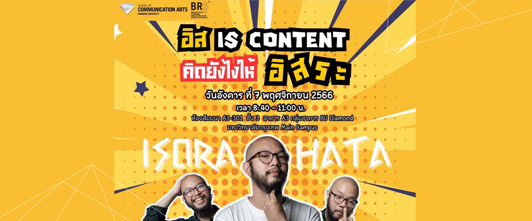 เข้าร่วมงานสัมมนาในหัวข้อ "อิส is content คิดยังไงให้อิสระ" กับ คุณอิสระ ฮาตะ หนึ่งในผู้ร่วมบุกเบิก YouTube ยุคแรก ๆ กับการแชร์ประสบการณ์การทำงานทั้งเบื้องหน้าและเบื้องหลังอย่างจัดเต็มที่นี่ที่เดียว เเล้วมาเจอกัน