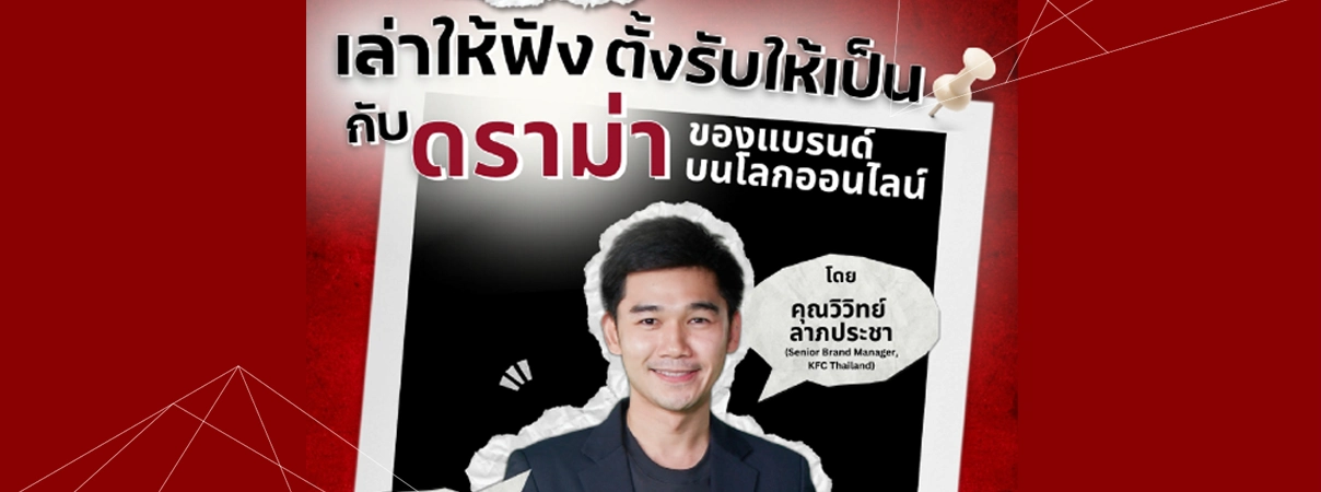ขอเชิญชวนทุกท่านที่สนใจเข้าร่วมฟังสัมมนา “เล่าให้ฟัง ตั้งรับให้เป็นกับดราม่าของแบรนด์บนโลกออนไลน์”