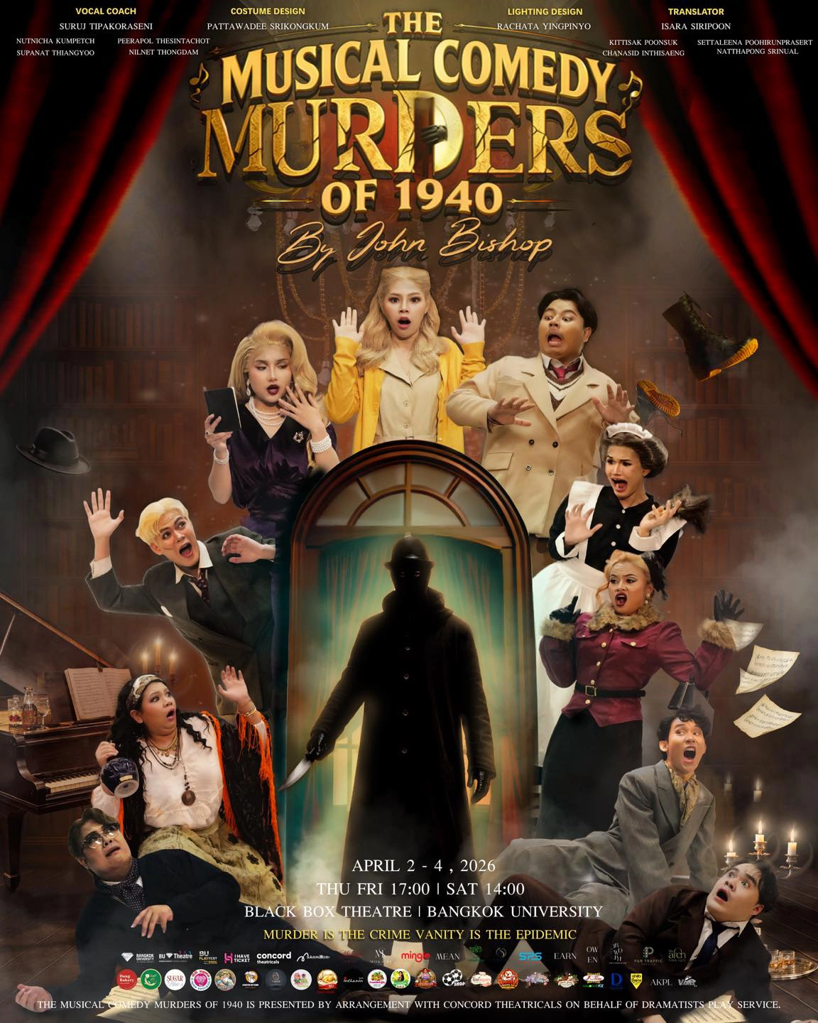 ประตูโรงละครของเรื่อง The Musical Comedy Murders of 1940 เปิดให้ผู้ชมทุกท่านได้มาไขคดีกับพวกเราแล้วที่ Black Box Theater Company