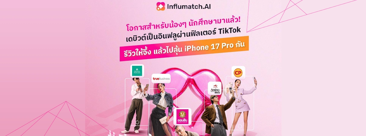 Influmatch.AI แพลตฟอร์มที่สร้างโอกาสให้ Creator รุ่นใหม่ แมตช์อินฟลูกับแบรนด์ที่ใช่เหมือนแอปหาคู่ แต่ได้งานจริง ✨ไม่ต้องมียอดฟอลเยอะ