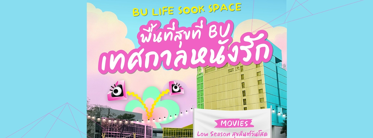 ชวนเพื่อนมานั่งปิกนิกนอนดูหนังกลางแปลงใช้ Facilities ในมหา'ลัยแบบฟินฟินในงาน "BU LIFE SOOK SPANCE พื้นที่สุขที่ BU เทศกาลหนังรัก" ฉายหนัง 2 เรื่อง Low Season สุขสันตวันโสด และ Lalaland พร้อมอิ่มท้องไปกับตลาด IM SOOK (อิ่มสุข)